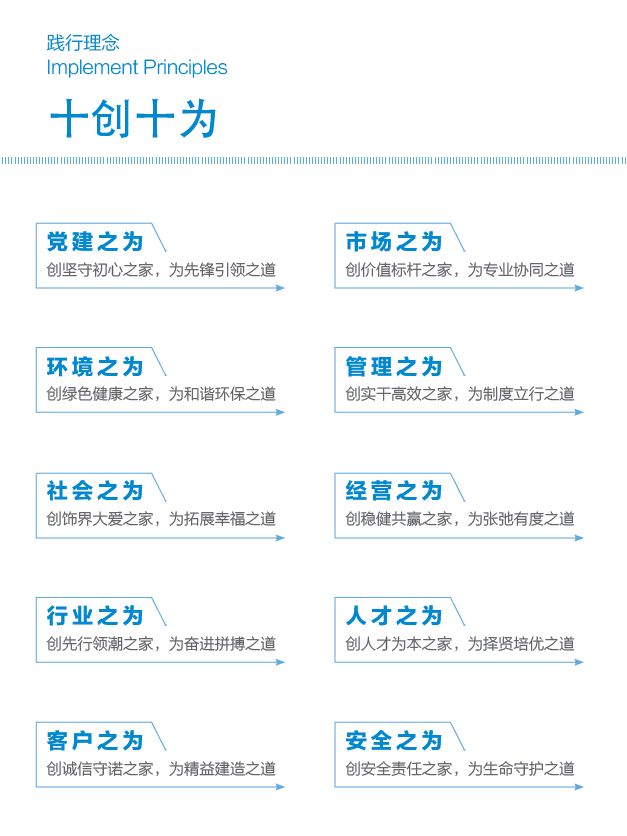 文化引領(lǐng)發(fā)展,文化成就未來。企業(yè)文化彰顯企業(yè)的價值觀,凝聚人心和力量,是企業(yè)發(fā)展的強大精神動力。2013年,中建深裝梳理、總結(jié)、提煉了深裝人共同的價值取向和精神財富,形成了具有公司特色的企業(yè)文化“家文化”?!笆濉逼陂g,在凝練出富有自身特色的企業(yè)文化——“家文化”的基礎(chǔ)之上,進一步完善發(fā)展升華出“有為之家”的企業(yè)文化,創(chuàng)新提出“十創(chuàng)十為”的踐行理念。升級后的“家”文化,以爭先為魂,以奮斗為本,指引公司共筑“幸福有為”之家,開創(chuàng)企業(yè)高質(zhì)量發(fā)展的新征程。