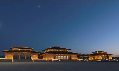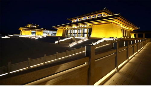 敦煌絲綢之路國際會展中心 通過對當(dāng)?shù)匚幕慕庾x及提煉,提出“夕青攬月,夢回漢朝”的照明主題,以簡潔的燈光手法,塑造一個大氣磅礴、意韻悠長的夜景燈光形象。